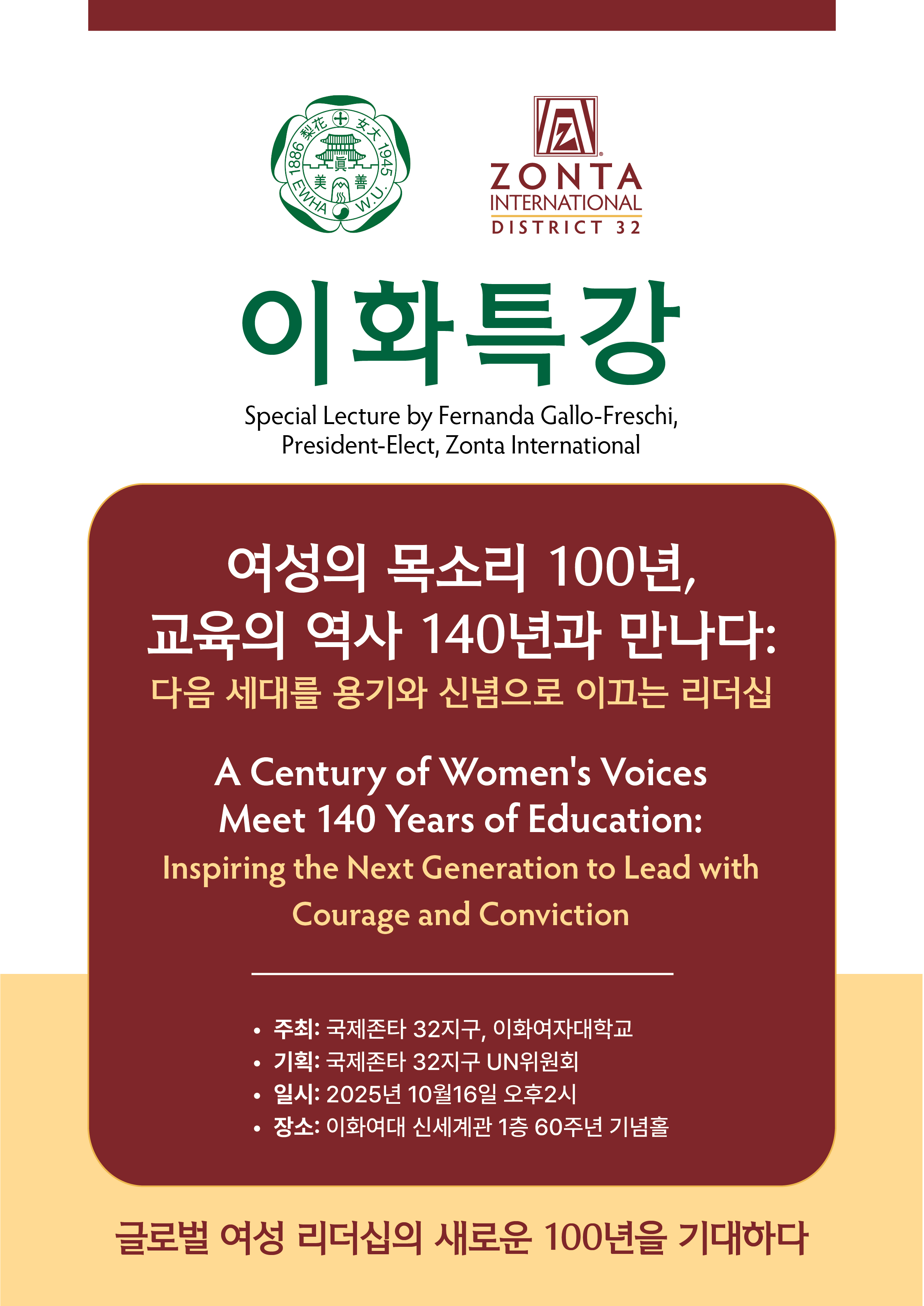 * 특강 강사: Fernanda Gallo-Freschi 박사 (국제존타(Zonta International)의 차기 회장)